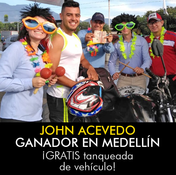 Desde el 17 de mayo y hasta el 17 de agosto tendrás muchas oportunidades de ganar. Mira algunos de nuestros felices ganadores; personas que tanquearon en nuestras Estaciones de Servicio de Cali, Bogotá, Medellín o Santa Marta, participando en LA HORA LOCA o en los DIAS DE MULTIPLICACIÓN DE PUNTOS y fueron los afortunados.